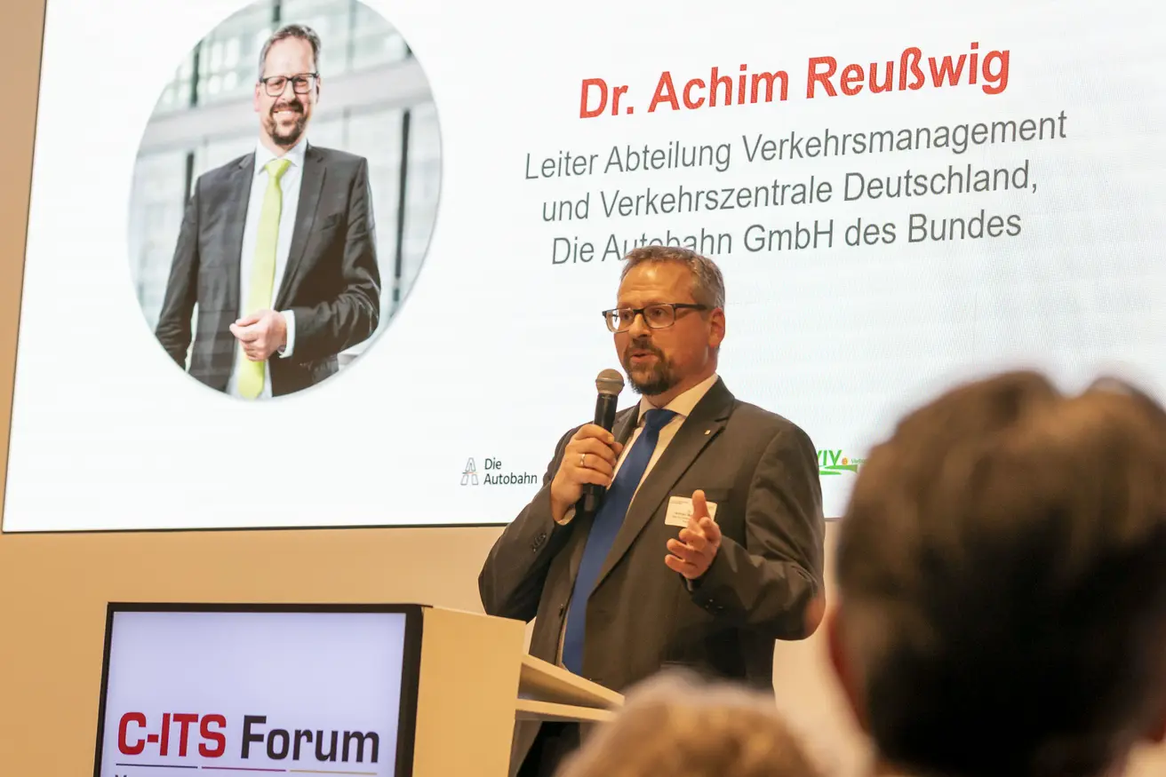 Dr. Achim Reußwig, Leiter der Abteilung Verkehrsmanagement und der Verkehrszentrale Deutschland, unterstreicht die strategische Bedeutung kooperativer intelligenter Verkehrssysteme: „Die Autobahn GmbH ist Pionier auf dem Gebiet C-ITS. Wir teilen unsere Erfahrungen im Regelbetrieb sehr gern, weil wir überzeugt sind, dass diese Technologie die Verkehrssicherheit signifikant erhöht. C-ITS ist ein digitales Ökosystem: Nur durch Kooperation entsteht ein System, das sicher, effizient und nachhaltig ist.“