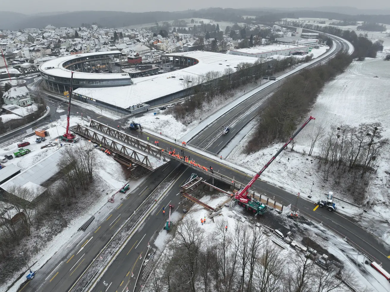 Nach dem erfolgreichen Verschub der Behelfsbrücke am 10. Januar 2026 wird die provisorische Brücke am Sonntag, 11. Januar 2026, ebenfalls noch unter der Vollsperrung in der Endposition fixiert. Anschließend werden notwendige Arbeiten an den Fahrbahnrändern ausgeführt. Nach Abschluss dieser Arbeiten steht der Streckenabschnitt der A48 den Verkehrsteilnehmenden wieder wie gewohnt zur Verfügung.