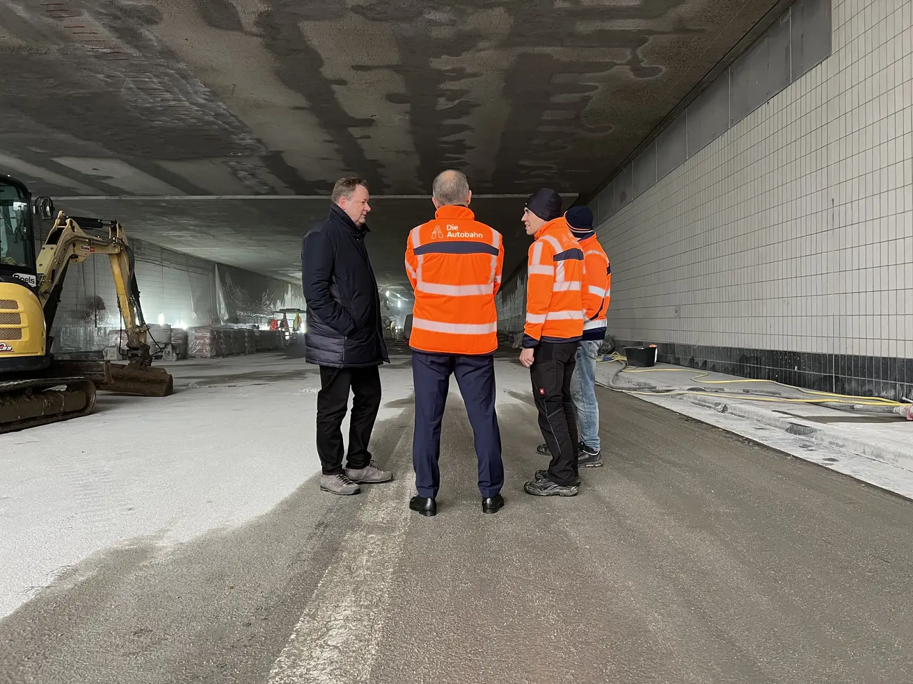Während des Termins vor Ort, in dem auch ein Blick auf die Arbeiten im Tunnel geworfen wurde, zeigten sich beide Vertreter dankbar für die gute und partnerschaftliche Zusammenarbeiten und hoben den guten Schulterschluss zwischen der Kommune und der Autobahn GmbH – Niederlassung Südbayern hervor.