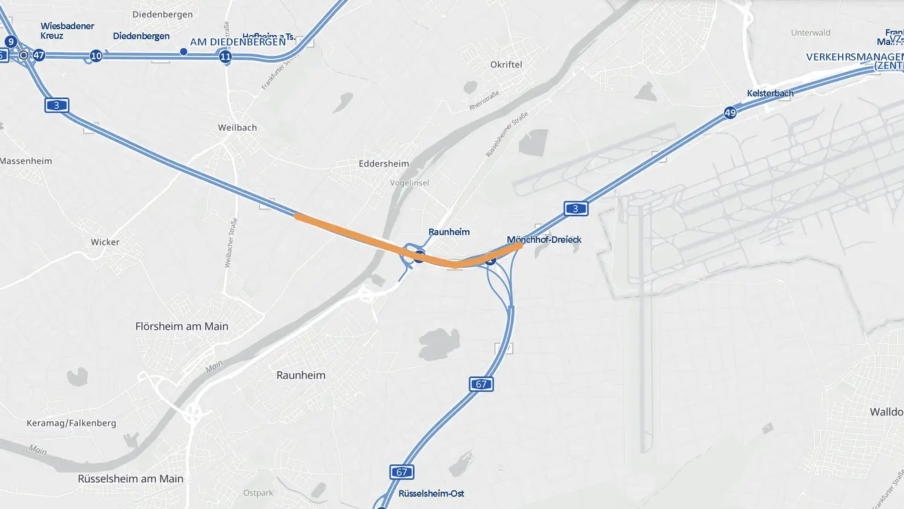 Die Maßnahme zur grundhaften Erneuerung der A3 zwischen Mönchhofdreieck und Wiesbadener Kreuz wird in zwei Bauabschnitten ausgeführt. Der erste Bauabschnitt (8,7 km) wurde bereits 2024 abgeschlossen. Die Autobahn GmbH investierte hier rund 13,5 Millionen Euro.