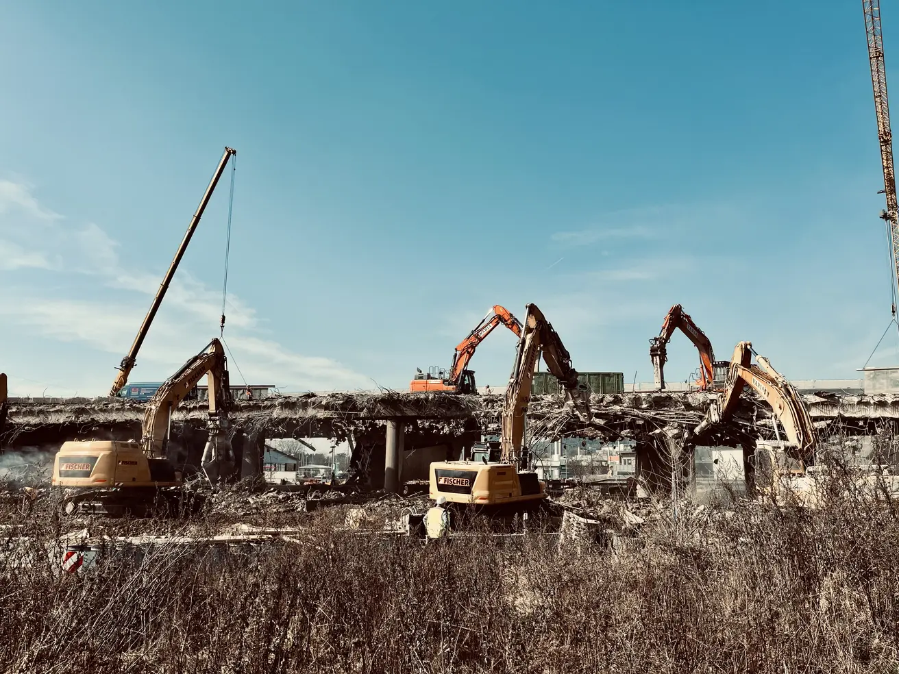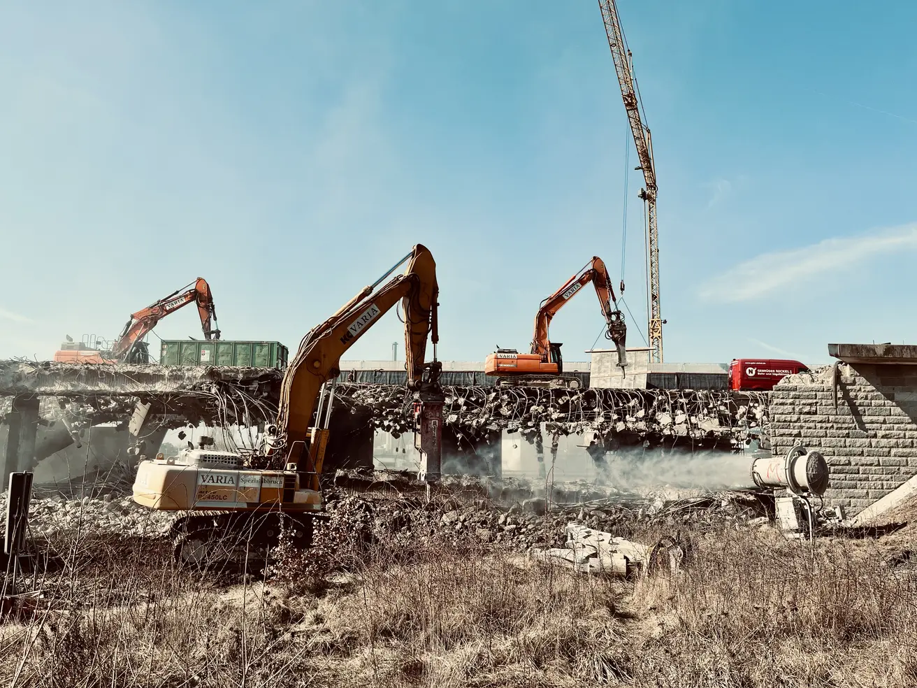 So schaut ein „perfekter“ Brückenabbruch aus! Eine logistische und technische Meisterleistung, die unter extremem Zeitdruck stattfand. Präzision und Planung waren hierbei allein entscheidend.