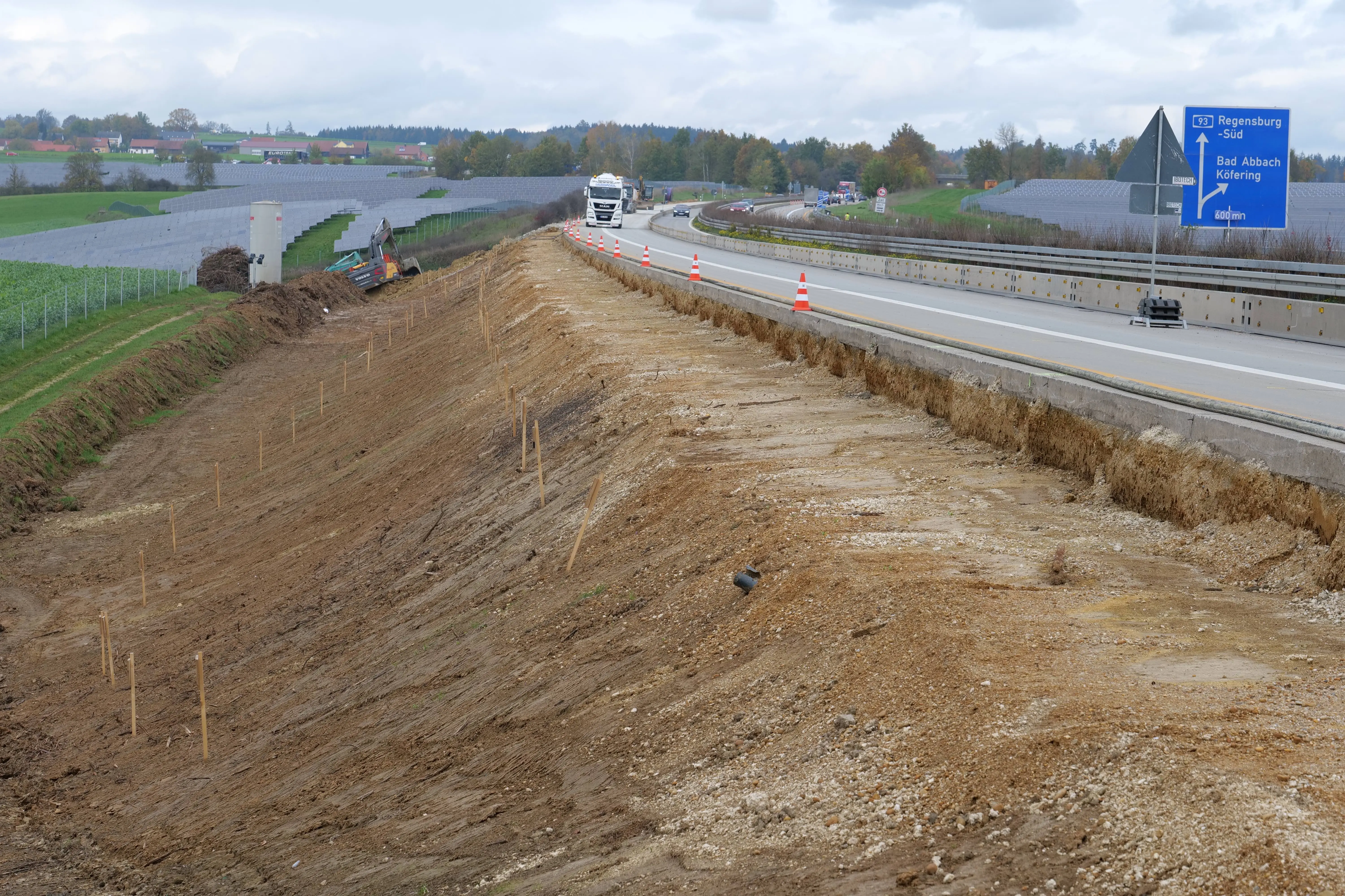 Die Aufteilung der Fahrstreifen (zwei in Richtung Holledau/München, einer in Richtung Regensburg/Hof) berücksichtigt die Verkehrsverhältnisse und -zahlen nördlich und südlich der Baustelle und wurde mit Blick auf die Verkehrssicherheit festgelegt. Insbesondere nördlich des Bauabschnitts der A 93 befinden sich verkehrlich hochbelastete Autobahnabschnitte, für die weitere Rückstaugefahr minimiert werden soll. Dazu zählen der Regensburger Abschnitt der A 93 mit dem Tunnel Prüfening, der Donaubrücke und dem Tunnel Pfaffenstein sowie das Autobahnkreuz Regensburg mit dem Baustellenabschnitt der A 3.