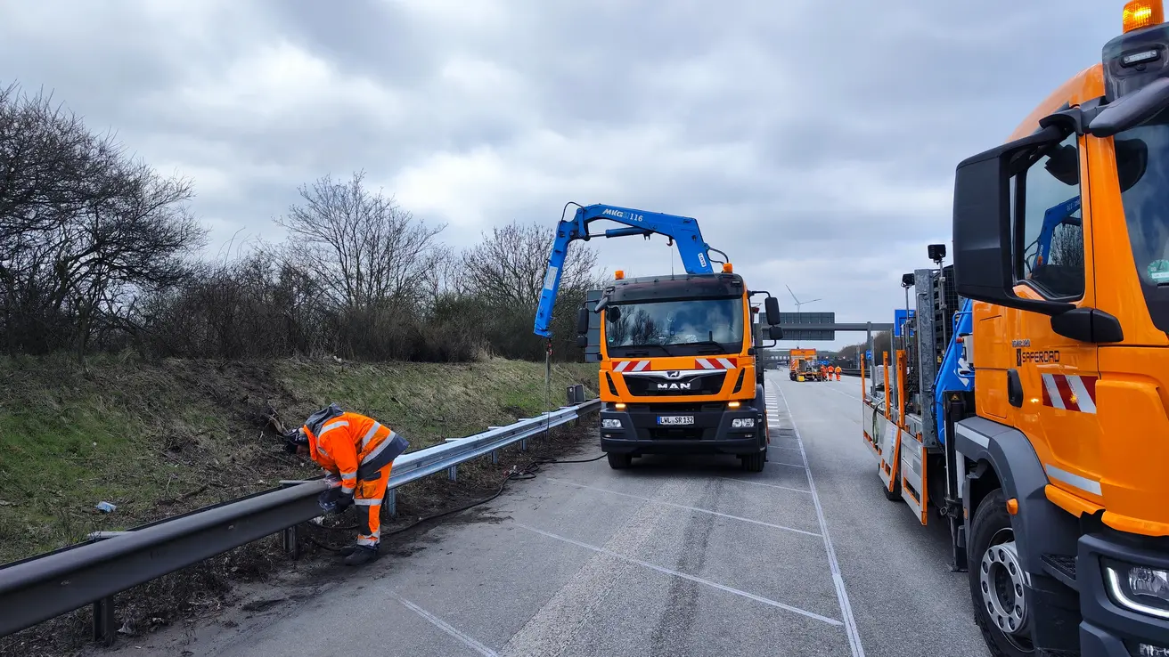 Die Autobahnmeisterei Stillhorn nutzte die Sperrung für Reparaturen von Schutzeinrichtungen und Asphaltschäden zwischen der Anschlussstelle HH-Billstedt (33) und dem Autobahndreieck Norderelbe (36).