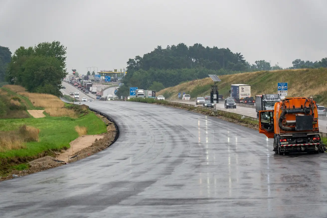 Zur Verbesserung der Lärmsituation in den an der Autobahn A9 anliegenden Gemeinden wird bei der Fahrbahndeckenerneuerung ein Lärm mindernder Belag eingebaut.