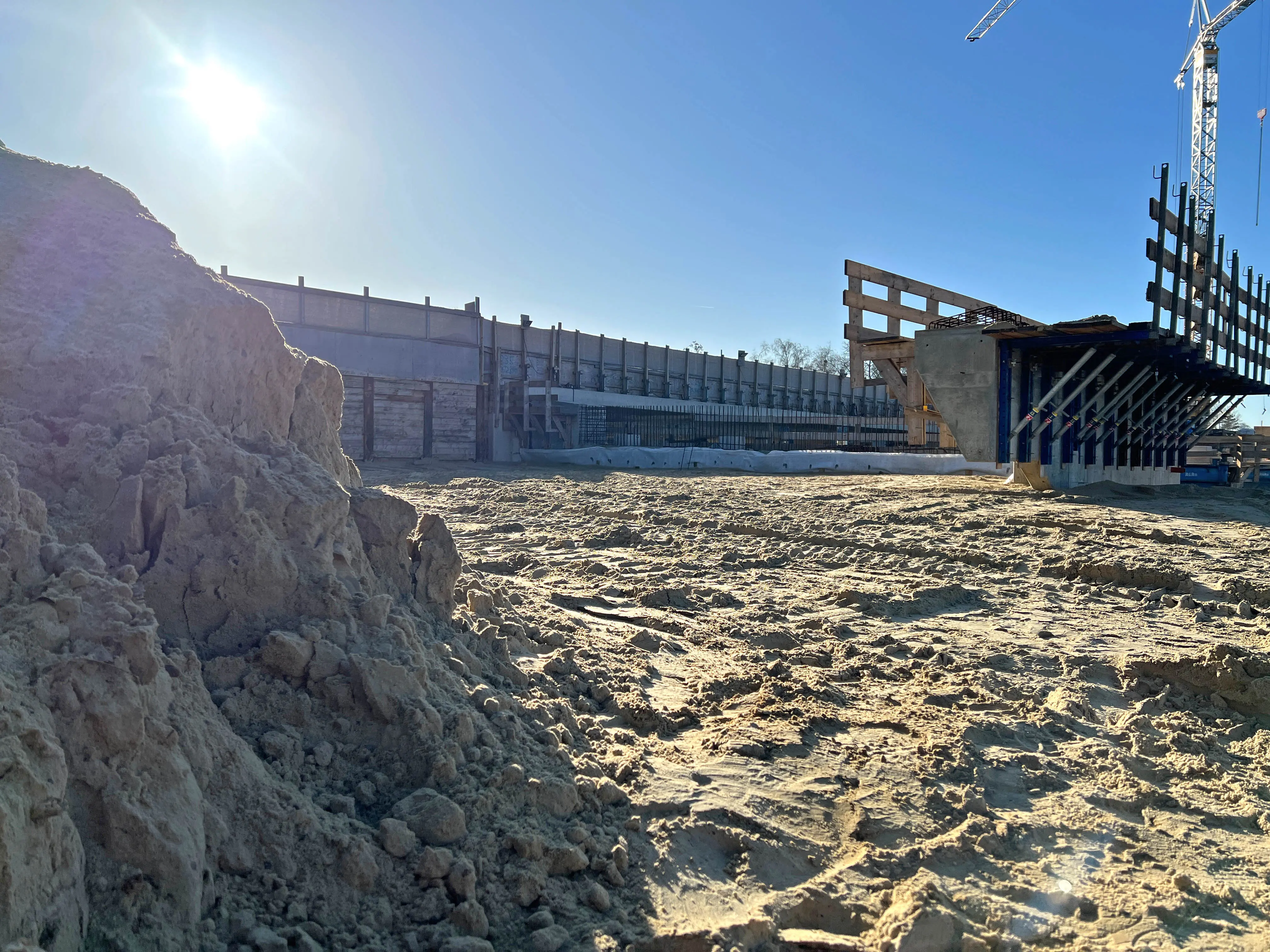- Die Sauberkeitsschichten für die Widerlager-Fundamente sind gegossen.