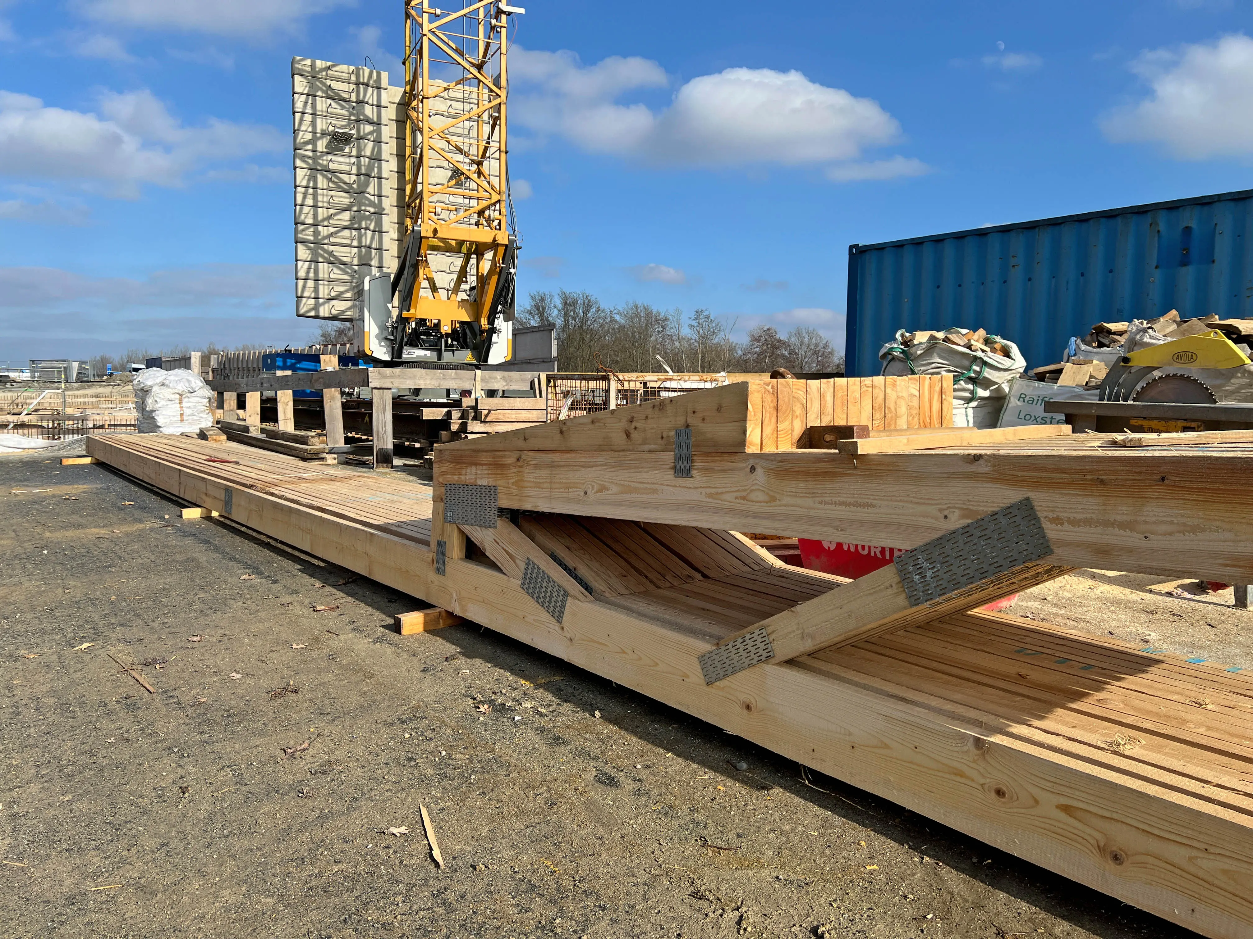 - Letzte Arbeiten an der Verschalung des nördlichen Widerlagers und des zweiten Brückenpfeilers laufen.