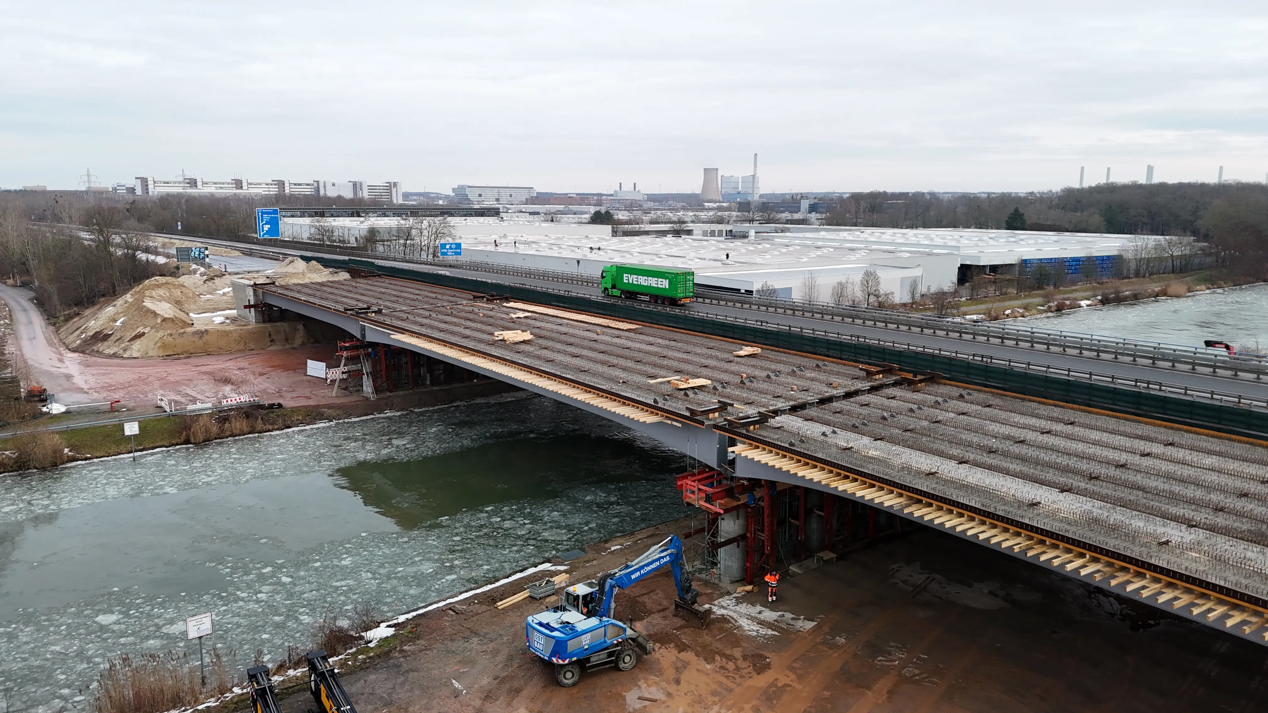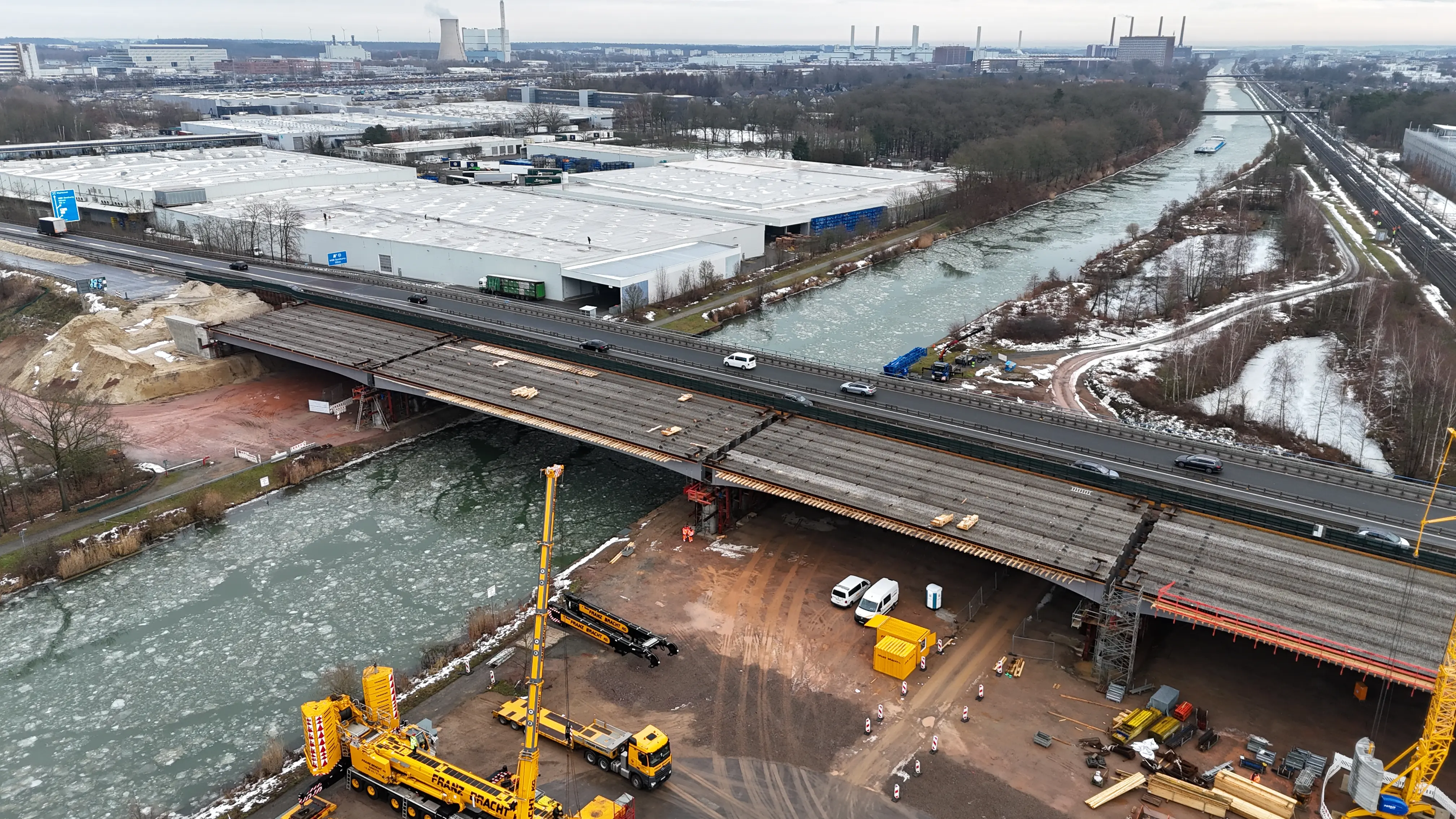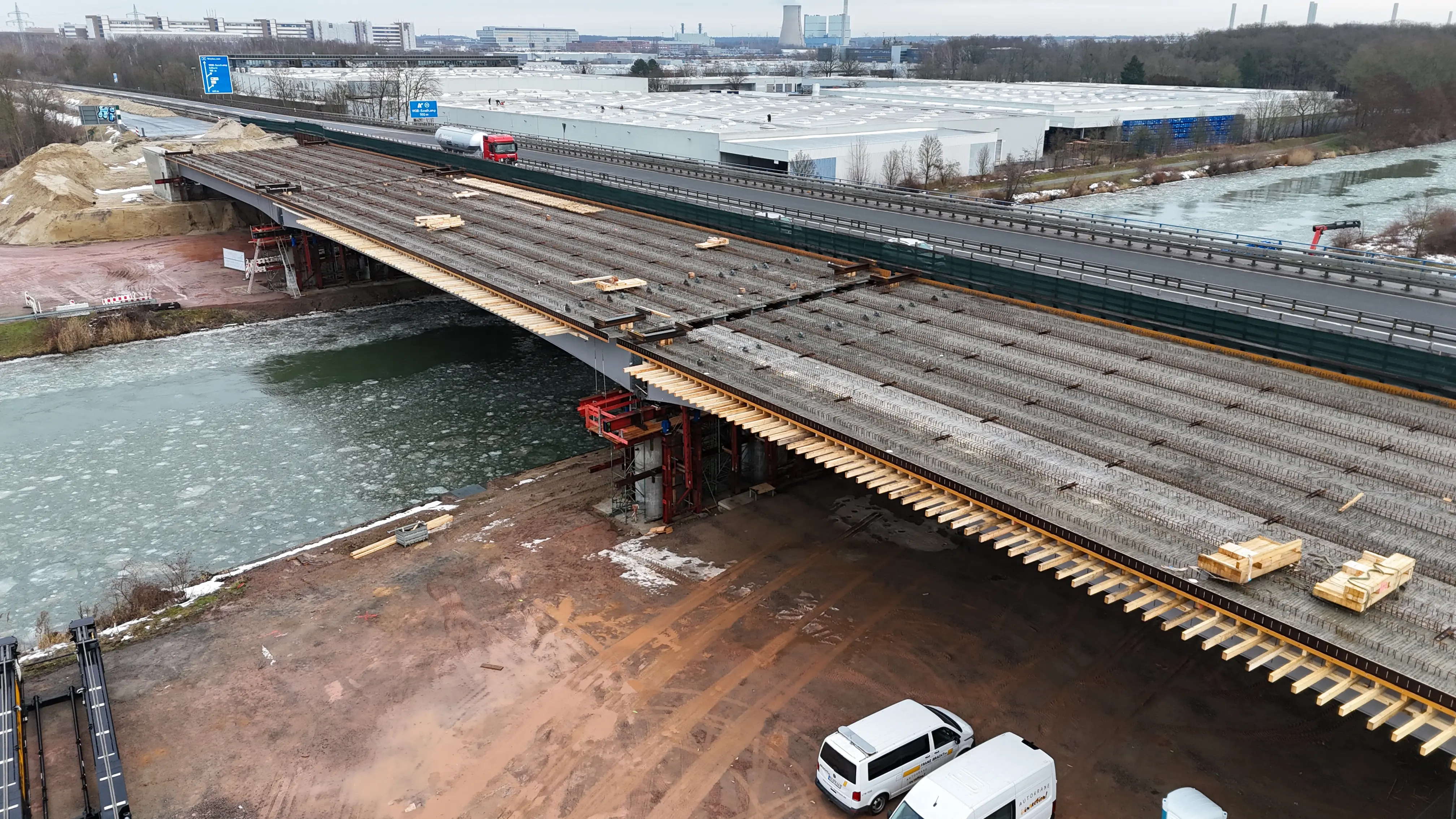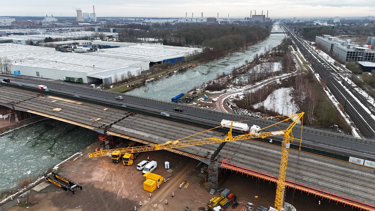 Brückenneubau über Mittellandkanal und Bahnstrecke auf der A39 bei Wolfsburg