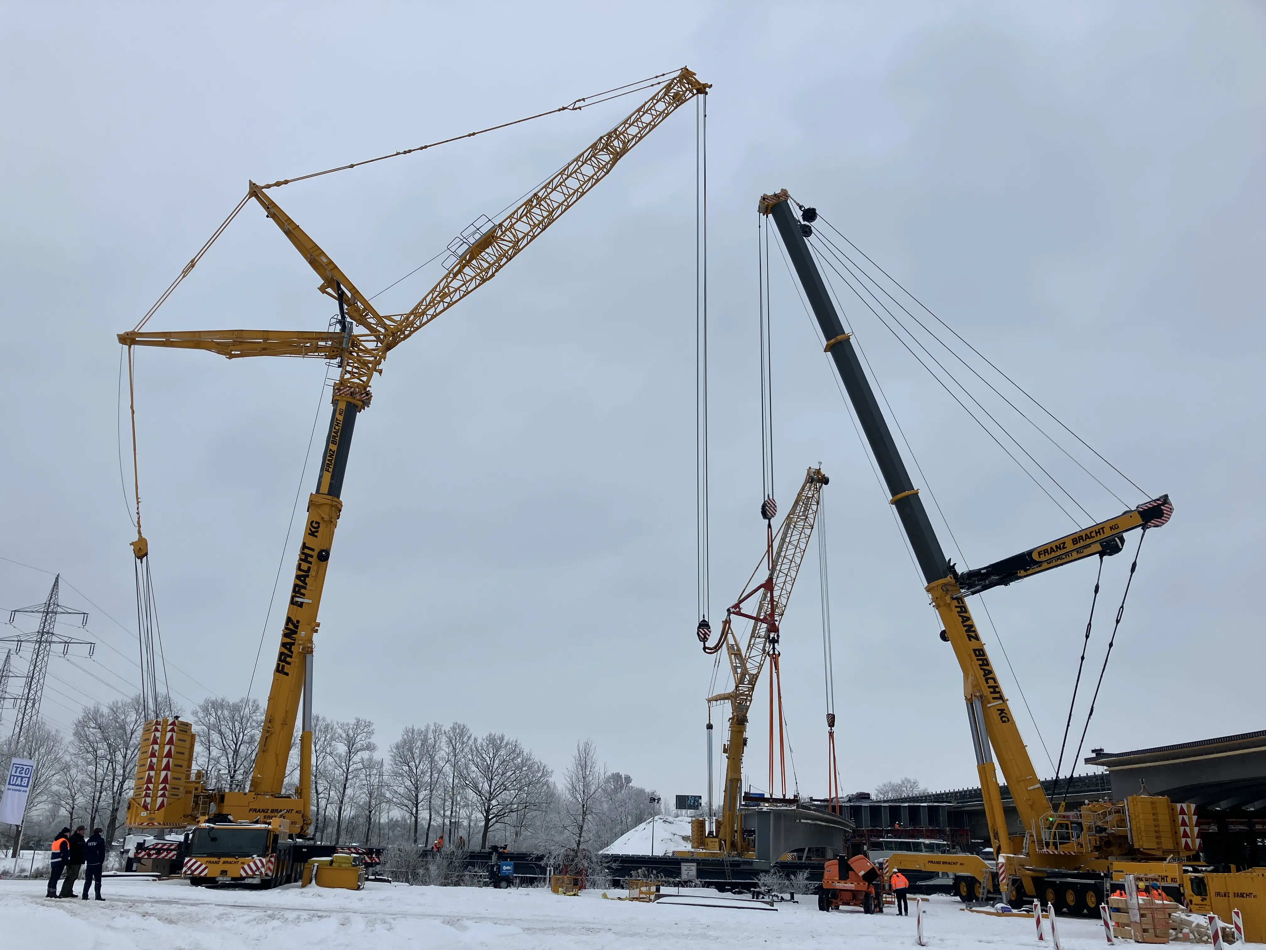 Die Fertigteile sind etwa 28 Meter lang und wiegen zwischen 50 und 55 Tonnen. Insgesamt sieben Stück wurden nachts und während einer dafür notwendigen Sperrpause der Deutschen Bahn eingehoben. In den nächsten Monaten erfolgt der Einbau der Fertigteile in den noch fehlenden fünf Brückenfeldern. Mitte Dezember soll der Einhub über dem Mittellandkanal erfolgen. Parallel zu den Einbauarbeiten der Fertigteilträger schreiten auch die Arbeiten am Boden voran: Erste Brückenpfeiler sind bereits entstanden und auch die neuen Widerlager werden betoniert.
