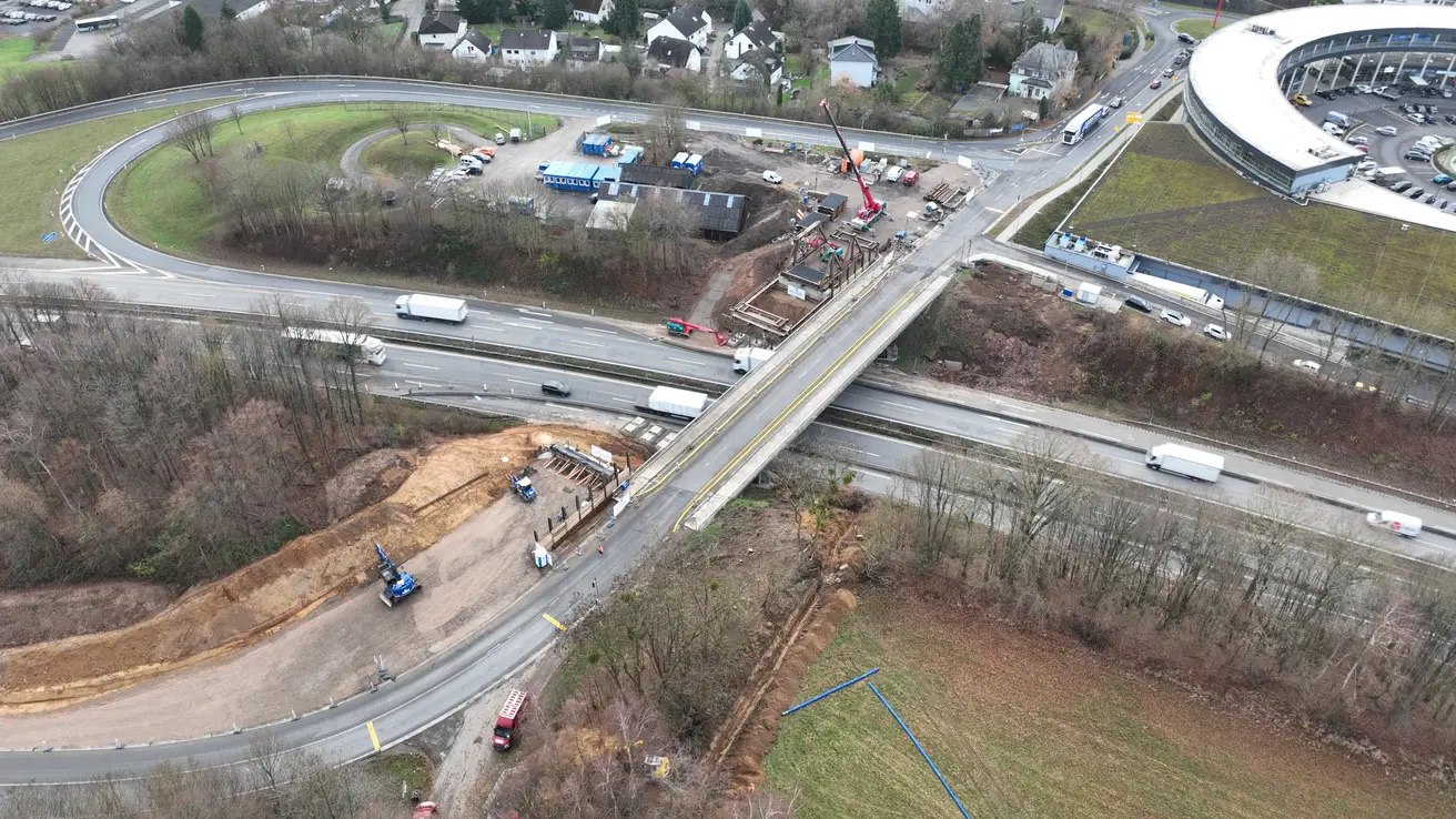 Dank des planmäßigen Baufortschrittes wird die Behelfsbrücke am Samstag, 10. Januar 2026, mit Hilfe eines Taktschiebeverfahrens auf die provisorischen Brückenlager verschoben. Am Sonntag, 11. Januar 2026, wird die Behelfsbrücke fixiert, und es werden abschließende Arbeiten an den Fahrbahnrändern ausgeführt.