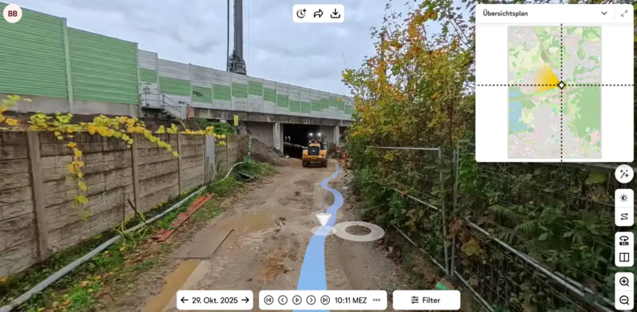 - Modellbasierte Bauablaufplanung und -kontrolle, unterstützt durch Punktwolken aus Drohnenbefliegungen (z. B. Mengenermittlung für Erdmassen)