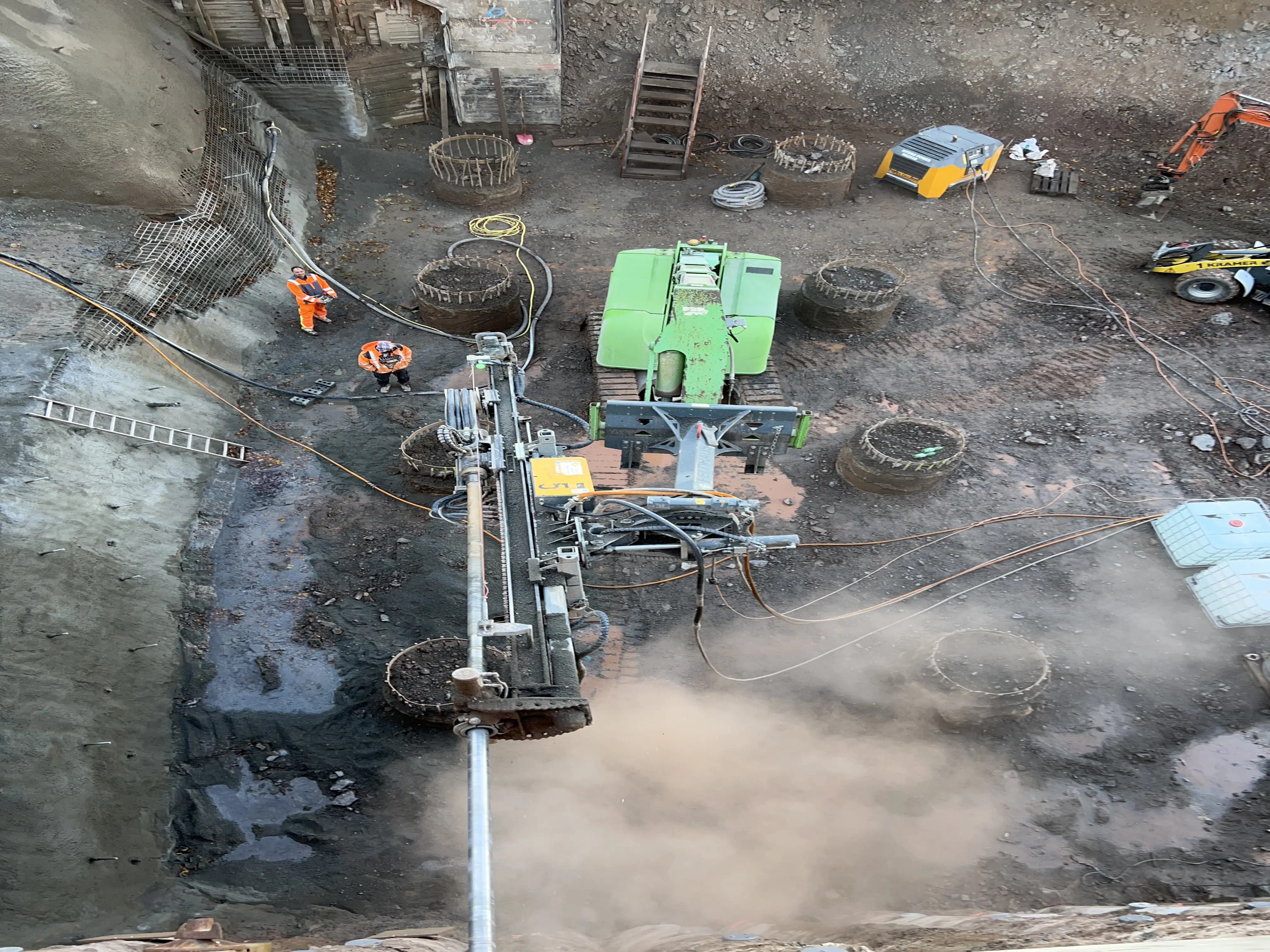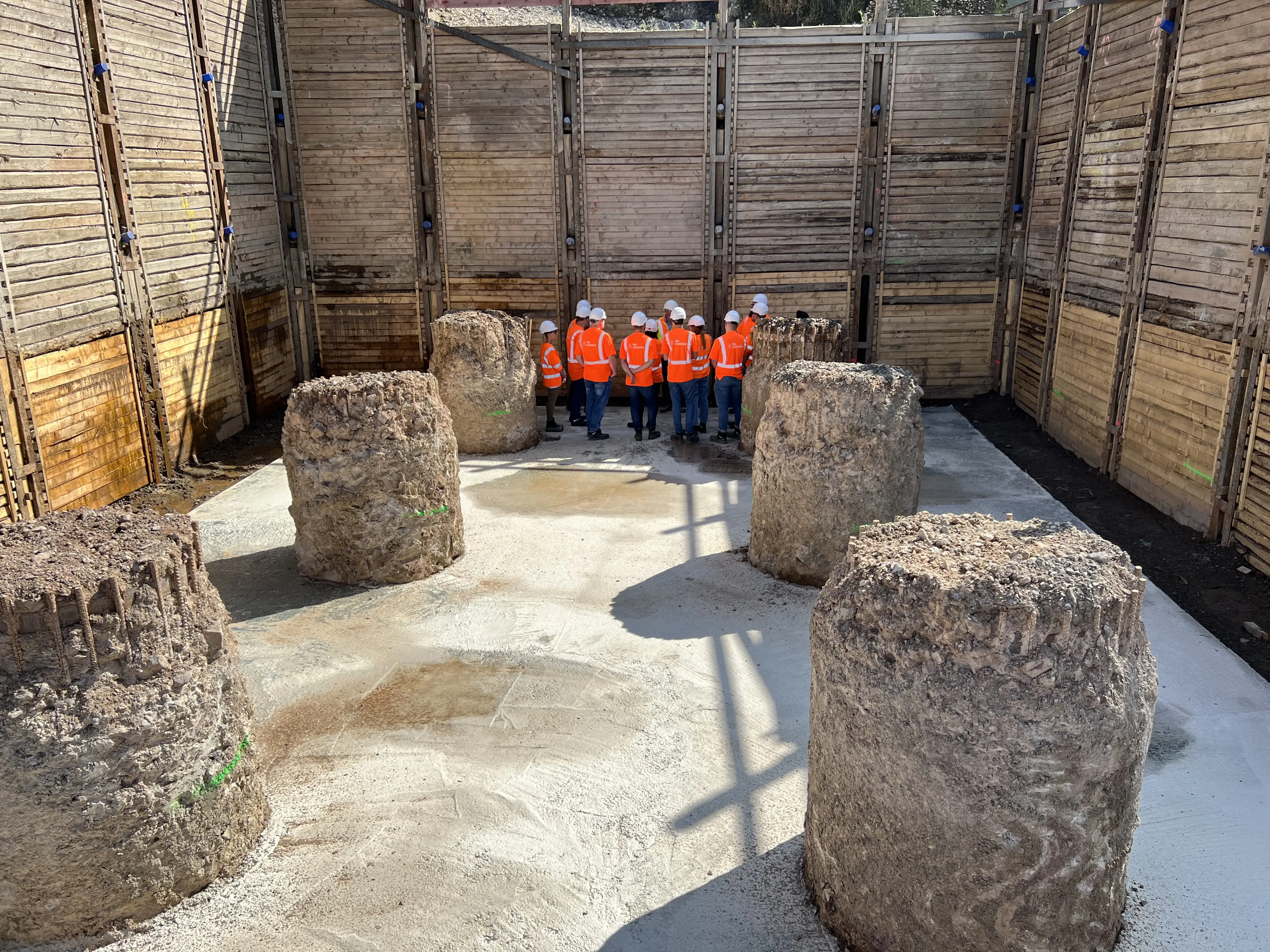 Um Arbeitsebenen für große Baugeräte zu schaffen, wurden in zwei Baubereichen sogenannte Betonstützscheiben in den Untergrund eingebaut.