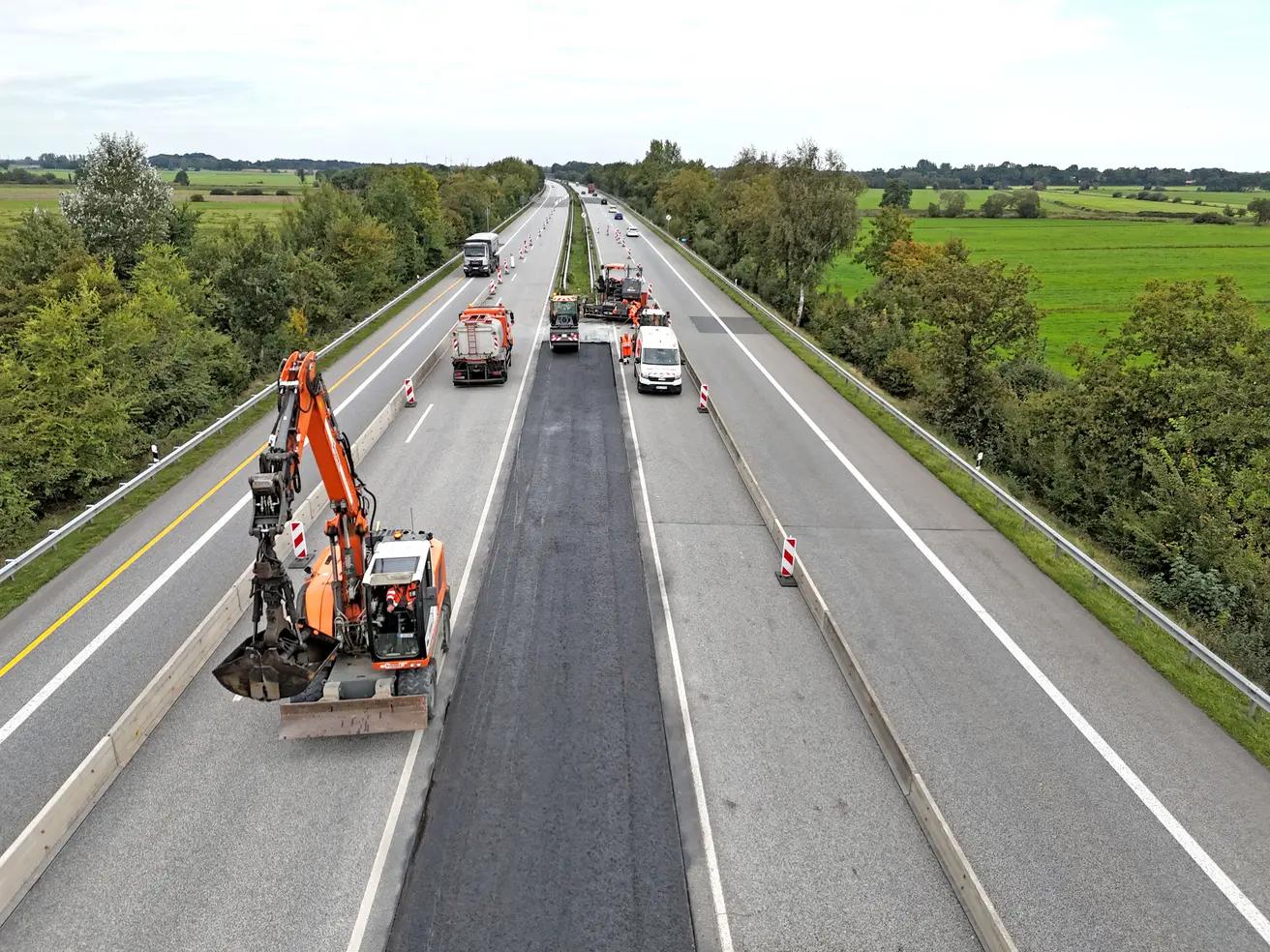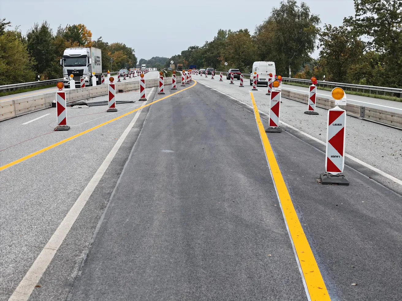 - Nach Abschluss wird der Verkehr auf die Richtungsfahrbahn Bremen umgelegt.