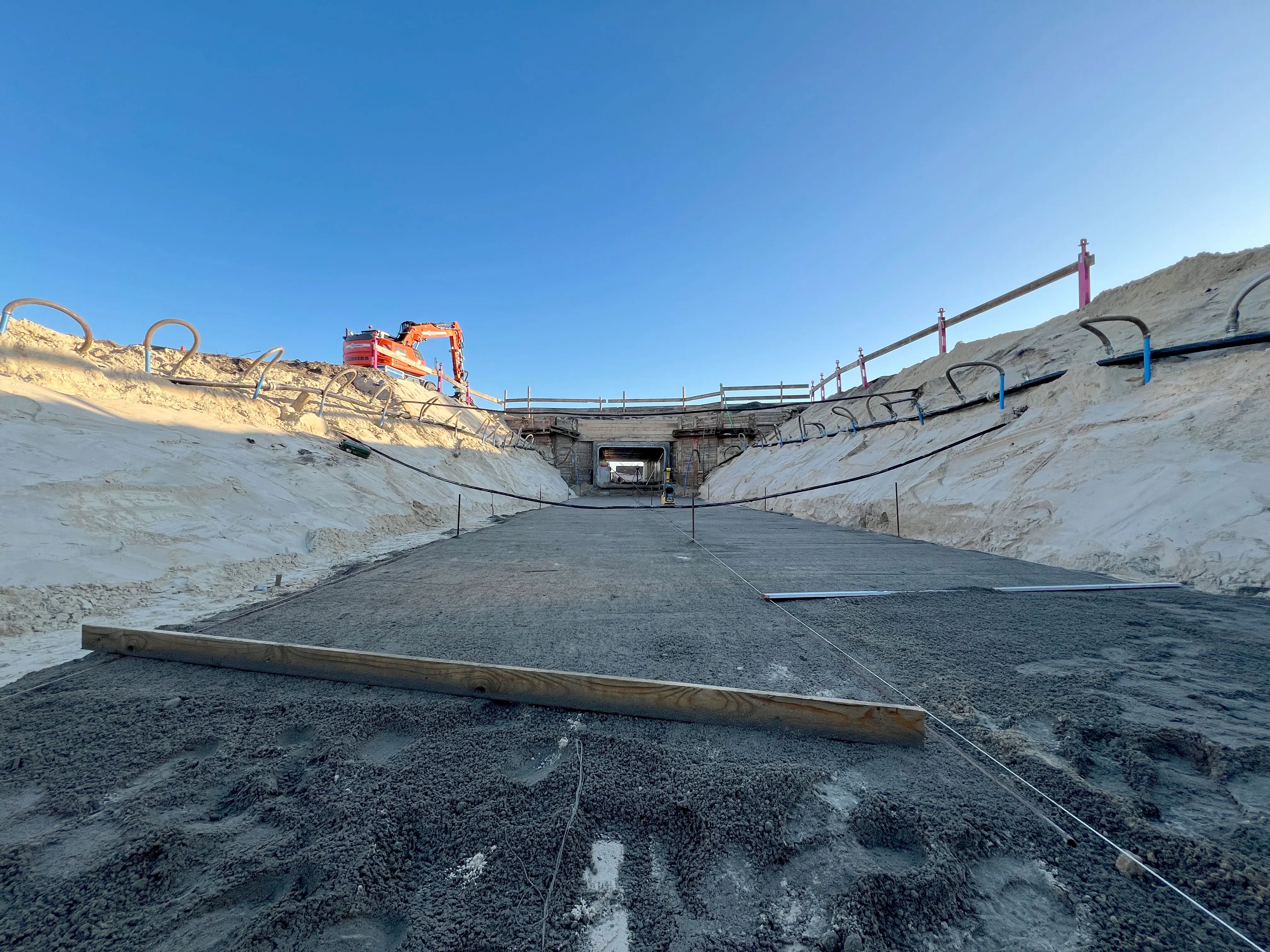 - Das Fundament für den Durchlass ist gegossen.
