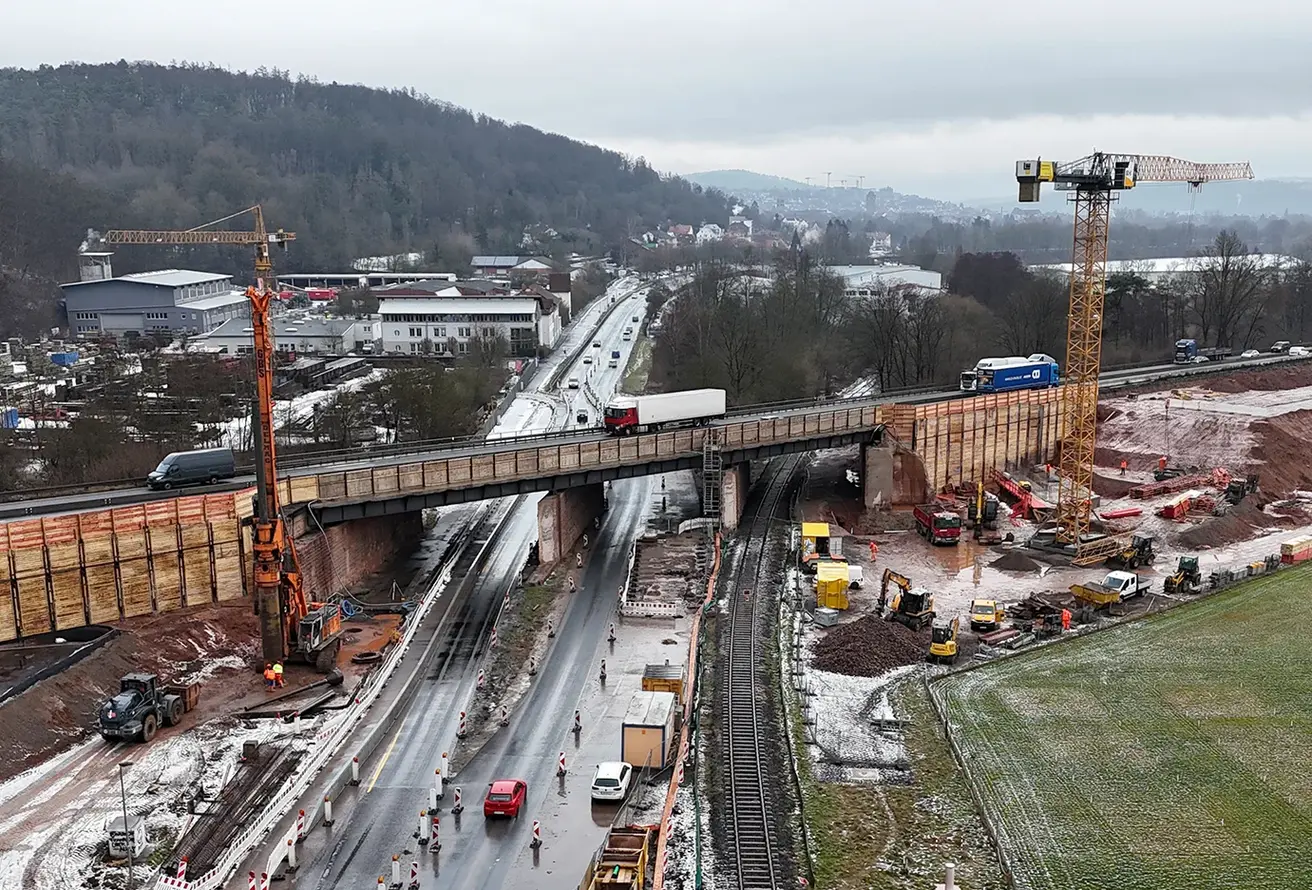 BAD HERSFELD. Ab Montag, 19. Januar 2026, ist die Bundesstraße 62 unter der Autobahnbrücke der A4 bei Bad Hersfeld für voraussichtlich vier Wochen nur einstreifig befahrbar. Der Verkehr wird durch eine Baustellenampel geregelt. Es gilt Tempo 30. Die Grünzeiten der Ampel sind den Stoßzeiten des Verkehrs morgens und abends angepasst. Mit Wartezeiten und Rückstau ist dennoch zu rechnen. Grund für die eingeschränkte Verkehrsführung sind die Arbeiten für den Ersatzneubau der Autobahnbrücke. Es erfolgt die Herstellung einer Baugrube sowie des Fundaments eines Brückenpfeilers auf der westlichen Seite.
