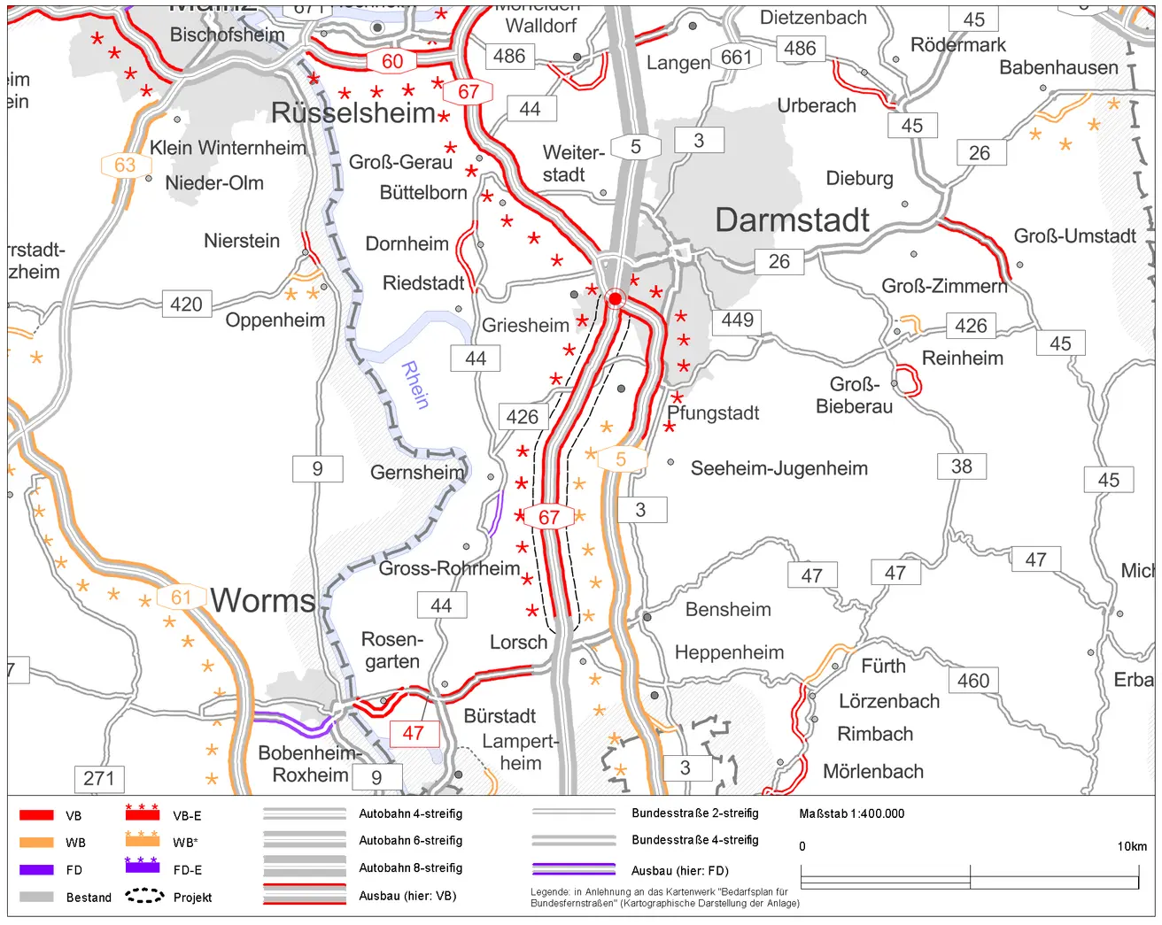Sechsstreifiger Ausbau zwischen Darmstadt und Lorsch